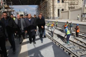 وتفقد الوزير الاعمال الجارية للإنتهاء من أعمال تشطيب وتأثيث المكاتب الإدارية وأماكن خدمة العملاء والاستعلامات كما تفقد مخطط حركة سير الركاب بالمحطة والارصفة ومقاعد انتظار الركاب وكذلك أعمال تركيب القضبان بعدها توجه الوزير لمتابعة أعمال الانتهاء من انشاء الورش المختلفة بالمحطة مثل ورشة صيانة عربات القطارات ‏والتي تشمل 12 سكة ‏وورشة صيانة الجرارات والتي تشمل ٦ سكك لأعمال ‏صيانة وتجهيز الجرارات ‏وجاري تنفيذ ‏عدد ٢ نفق سيارات ونفق للمشاة للدخول والخروج ‏من محور الفريق كمال عامر ‏ولربط جراج المحطة ‏بالمحور وعدد ٢ نفق سيارات ‏بإتجاه شارع السودان ونفق للمشاة ‏لربط الشارع بجراج المحطة كما تابع الوزير مخطط سير حركة الركاب سواء من المدخل الرئيسي او من الانفاق للوصول الى صالات التذاكر وتوافر السلالم الكهربائية والمصاعد لتسهيل تنقل الركاب.
