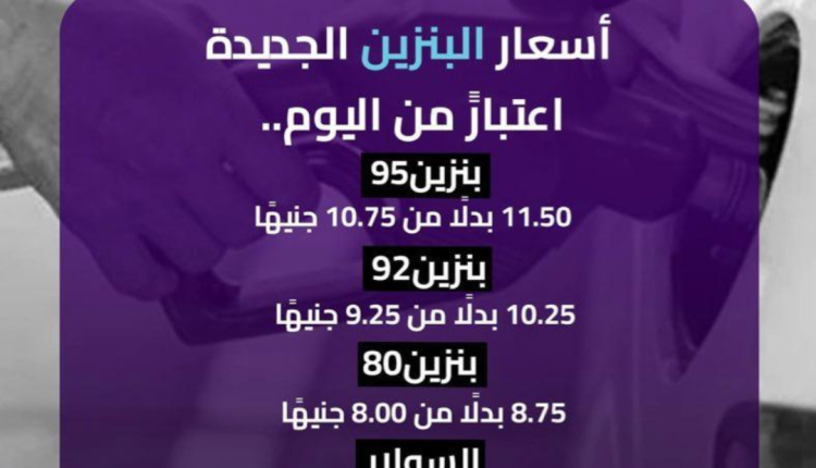 شمل الرفع منتجات البنزين بأنواعه الثلاثة اعتبارا من الساعة الثانية من صباح اليوم، لتصبح 8.75 جنيه للتر البنزين 80 بدلًا من 8 جنيهات، و 10.25 جنيه للتر البنزين 92 بدلًا من 9.25 جنيه، و 11.50 جنيه للتر البنزين 95 بدلًا من 10.75 جنيه، بحسب الأسعار السائدة منذ أكتوبر من العام الماضي.