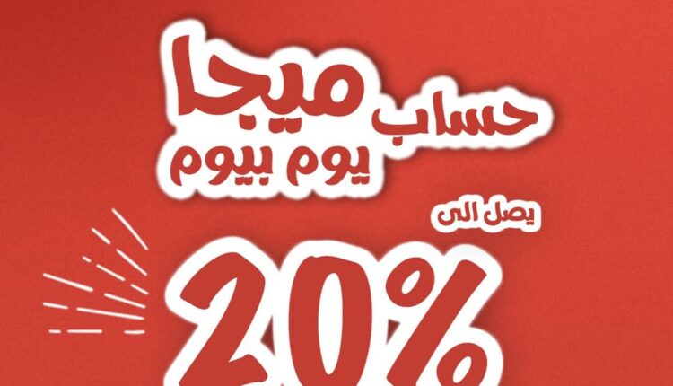 وقال البنك: فلوسك هتزيد كل يوم مع حساب ميجا يوم بيوم من saib، بعائد سنوي يصل إلى 20% يصرف يوميا.