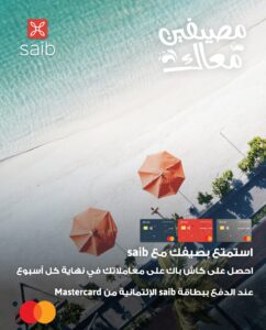 كما يقدم البنك هدايا وخصومات “كاش باك” وعروض خاصة، عند استخدام بطاقات saib الإئتمانية، والتى تشمل الآتي: